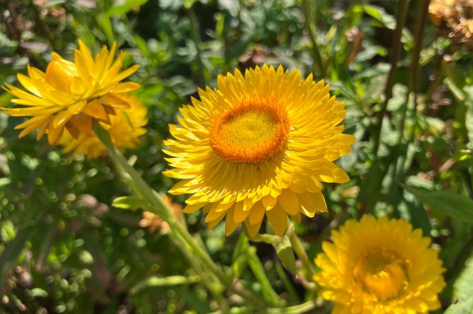 Die bekannteste aller Trockenblume in einer homogenen Farblinie. Die robusten Pflanzen können bis 1,50m groß werden. In windigen Lagen sind daher Stützvorrichtungen ratsam.